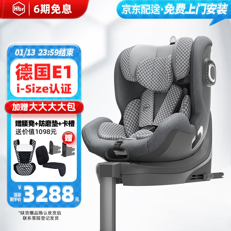 虎贝尔(HBR)E360婴儿童座椅头等舱0-4-12岁i-Size认证360度旋转棋盘格灰价格:3480.00元!