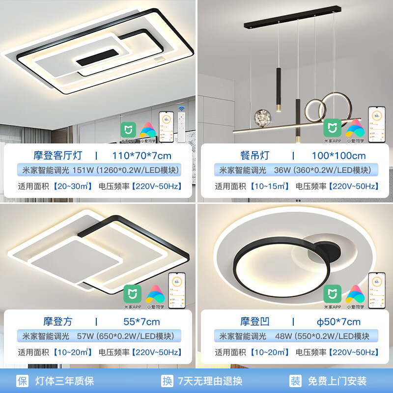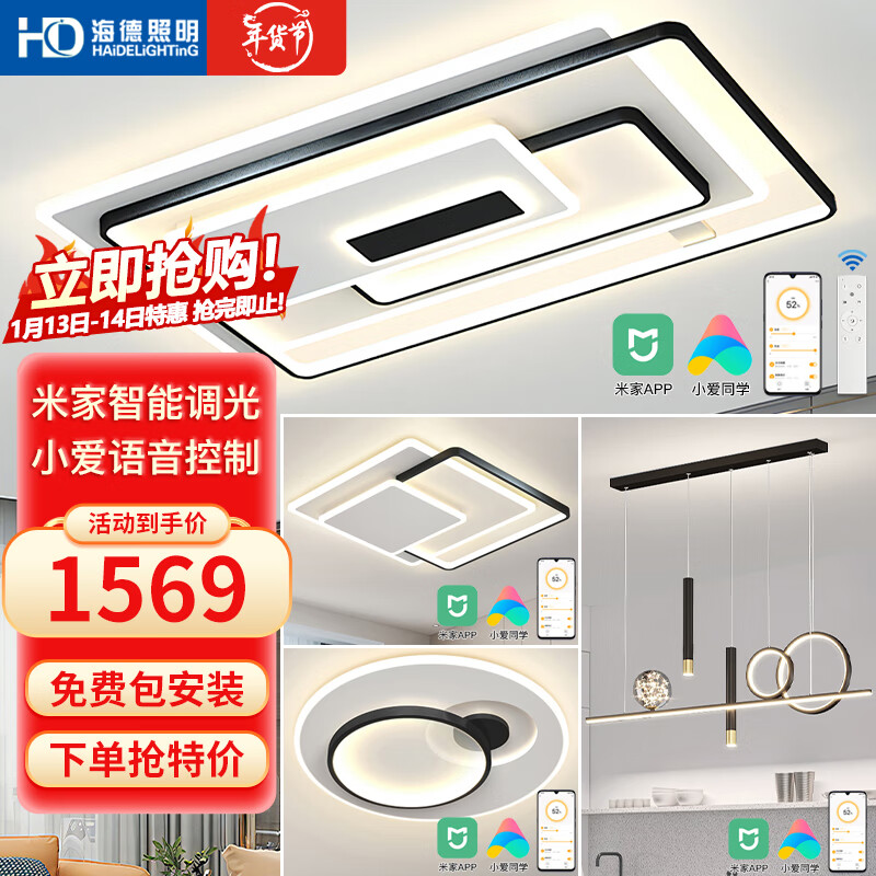 HD米家智能AI语音吸顶灯 led大客厅卧室全屋灯饰 包安装灯具套餐M价格:1999.00元!