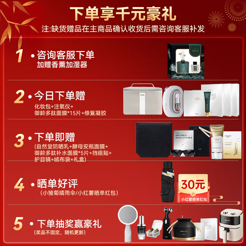 4、到手好多天了,很高级,包装都很好,期待效果,客服回复及时,送的礼品都有