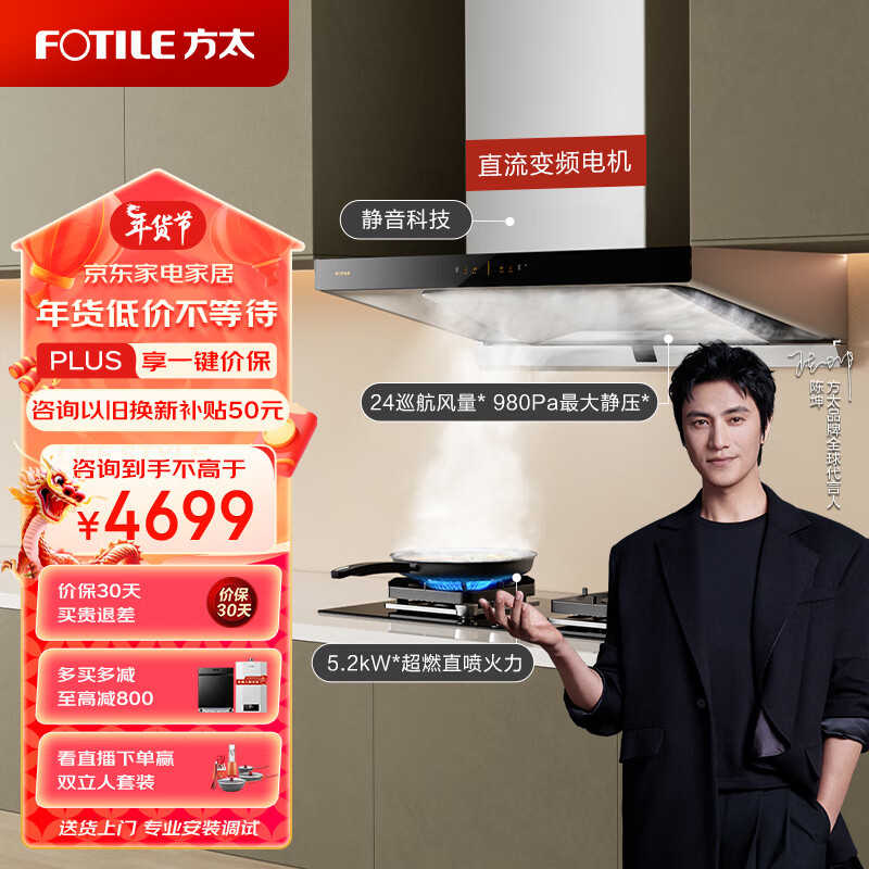 方太抽吸油烟机灶具套装 欧式顶吸排烟机燃气灶套餐 24巡航风量变频 家用烟灶01-EMQ6T+02-TH27B天然气价格:4699.00元!