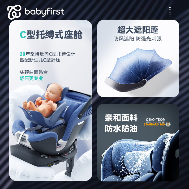 宝贝(Babyfirst)灵悦婴儿童座椅汽车用isofix接口0-7岁i-Size认证幻影蓝R153B价格:2680.00元!