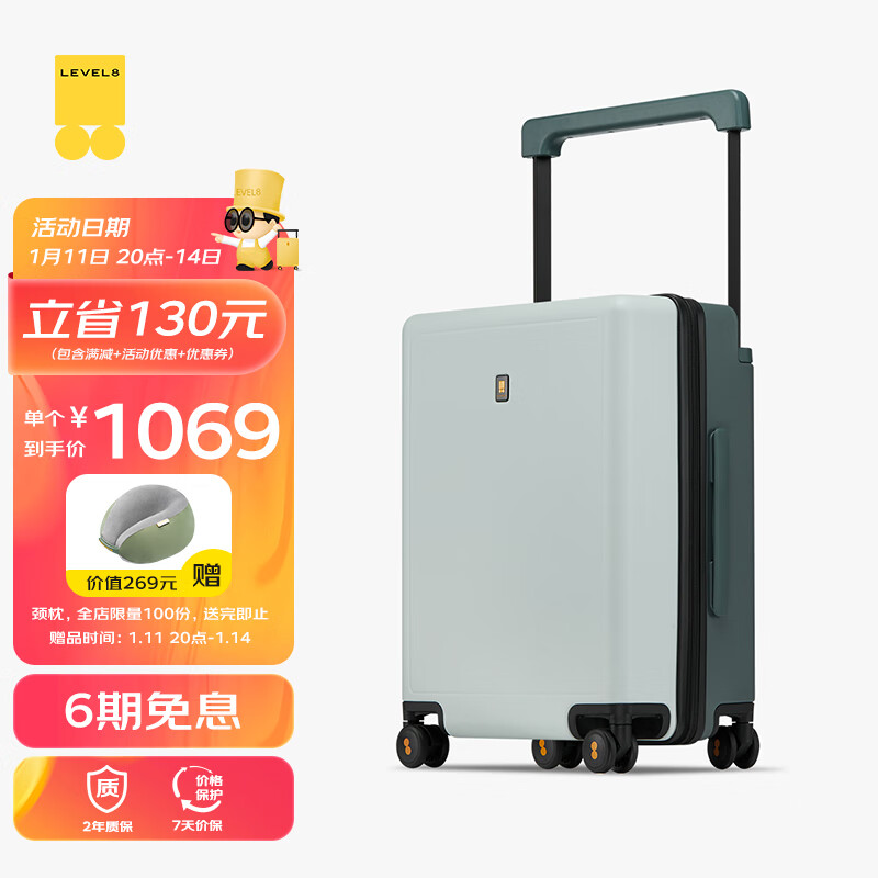 地平线8号(LEVEL8)行李箱男女密码拉杆箱大旅行家20英寸登机宽拉杆PC旅行箱抹茶撞色价格:1199.00元!