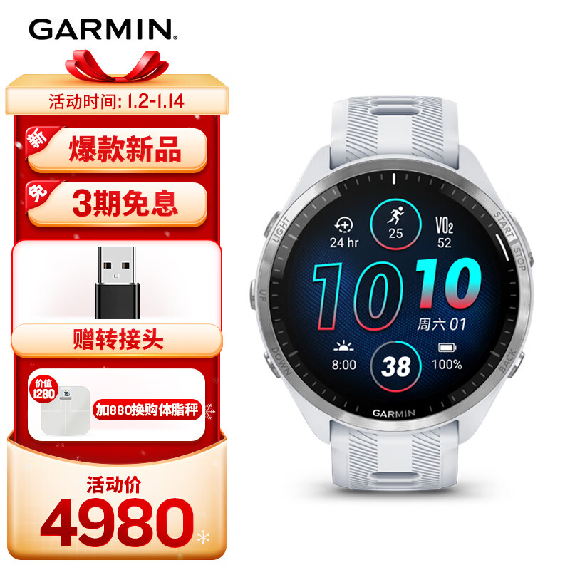 佳明(GARMIN)Forerunner965白色多功能心率跑步HRV血氧铁三训练户外运动手表价格:4980.00元!