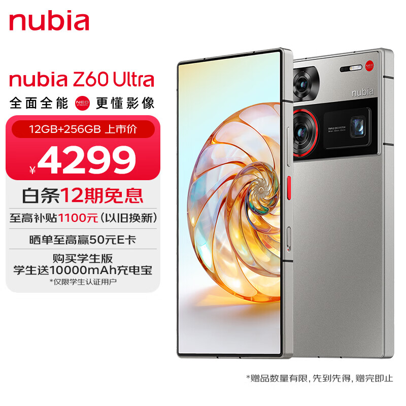 nubia努比亚Z60 Ultra 屏下摄像12GB+256GB 银河 第三代骁龙8 三主摄OIS+6000mAh长续航 5G手机游戏拍照价格:4299.00元!