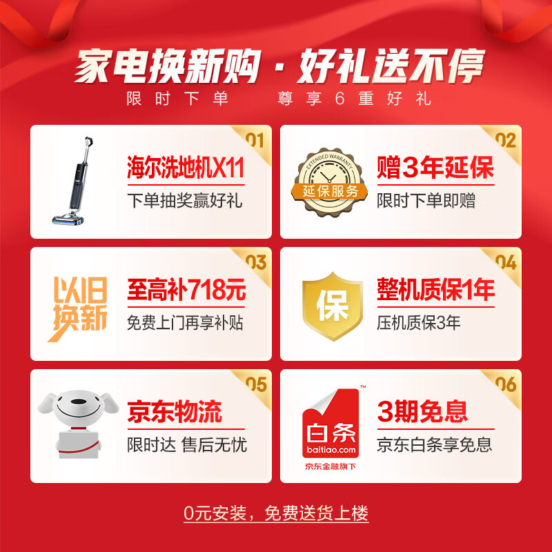 5、特意选的海尔这款白色冰箱,衬托家里明亮简洁,按师傅要求放置了4个小时通电,制冷功能良好。460L大容量,感觉能装很多东西,超想去超市大采购,把冰箱塞的满满的。底部前置散热,放进厨房左右不用预留距离散热啦。90度直角全开门,开门更方便。黑金净化,不在担心冰箱有异味啦。还有母婴专属空间,特别的好。物超所值,nice!!!