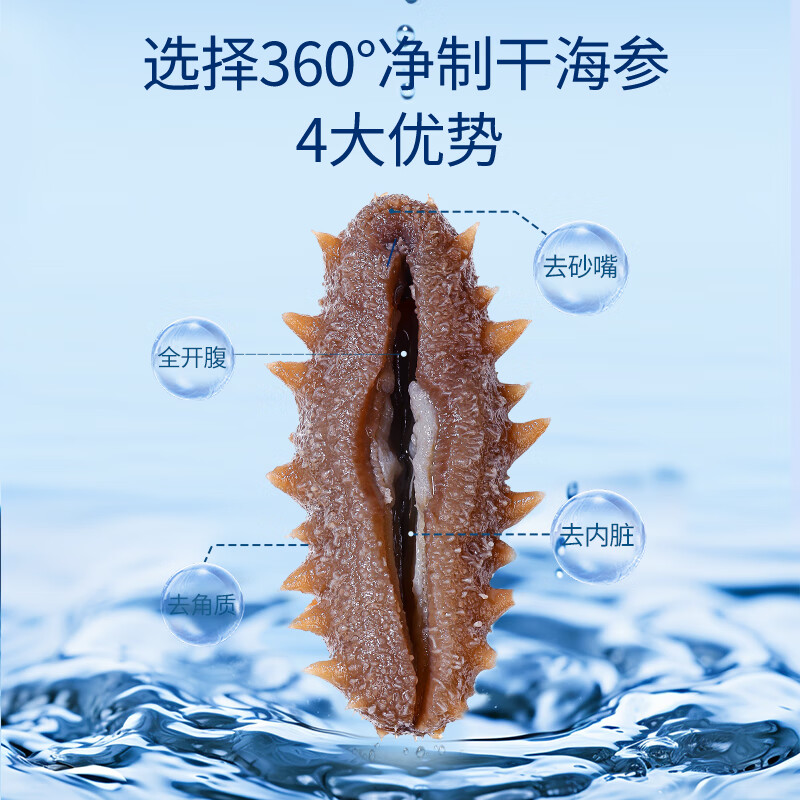 4、非常满意的一次购物,本人买过各种牌子的海参,这个海参应该属于品质上好的一种,刚拿到感觉这个海参好小,但泡发两天后,就非常满意,海参很干净,里面的筋也非常好,不想有些品牌的,泡两天就软趴趴,筋一碰就断,这个泡完筋是很硬,很有弹性的