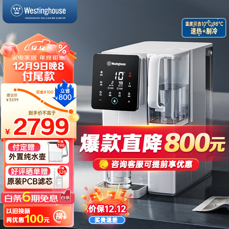 西屋(Westinghouse)台式免安装净饮一体机家用 加热制冷直饮机 桌面即热式饮水机 F5曼哈顿版(矿化弱碱&制冷速热)价格:2799.00元!