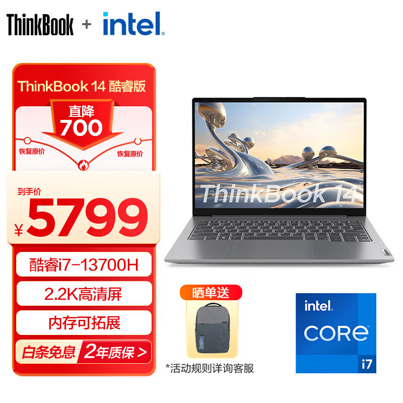 ThinkPad 联想ThinkBook14/16 13代英特尔酷睿 商务轻薄笔记本电脑 2023新品 14英寸:i7-13700H 16G 1T6MCD价格:6499.00元!