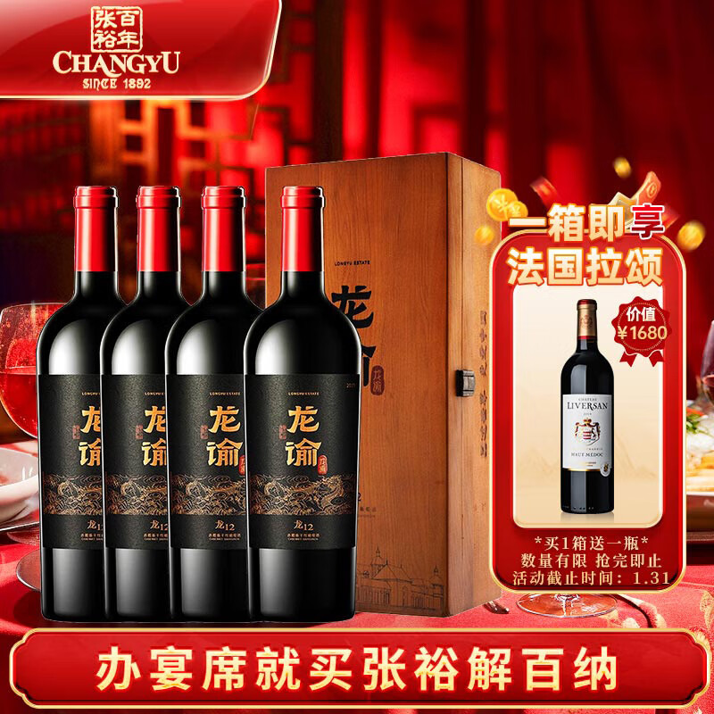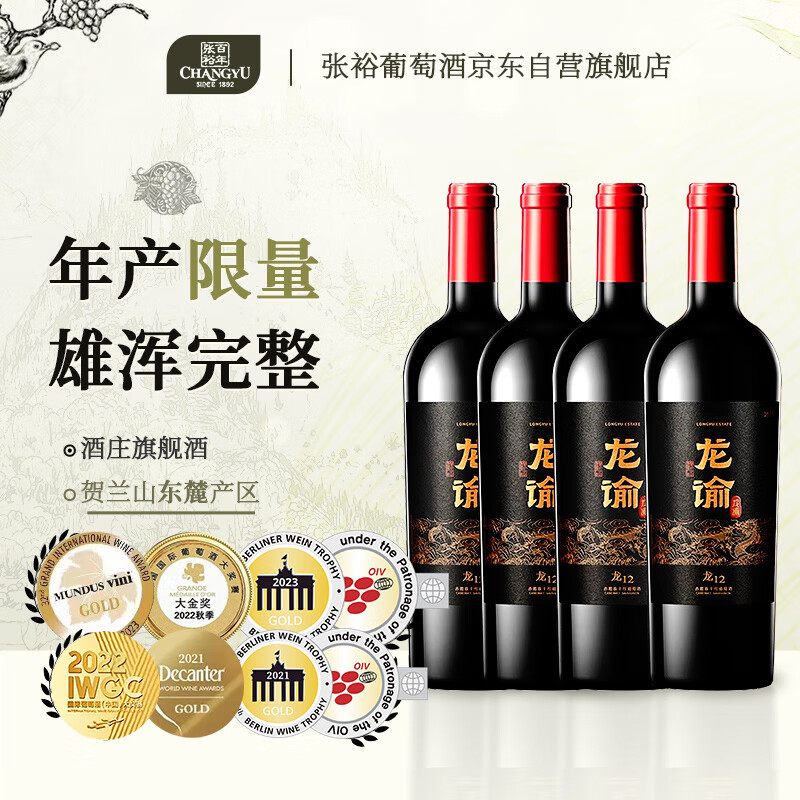 龙谕酒庄龙12赤霞珠干红葡萄酒750ml*4瓶整箱装国产红酒年货送礼价格:6720.00元!