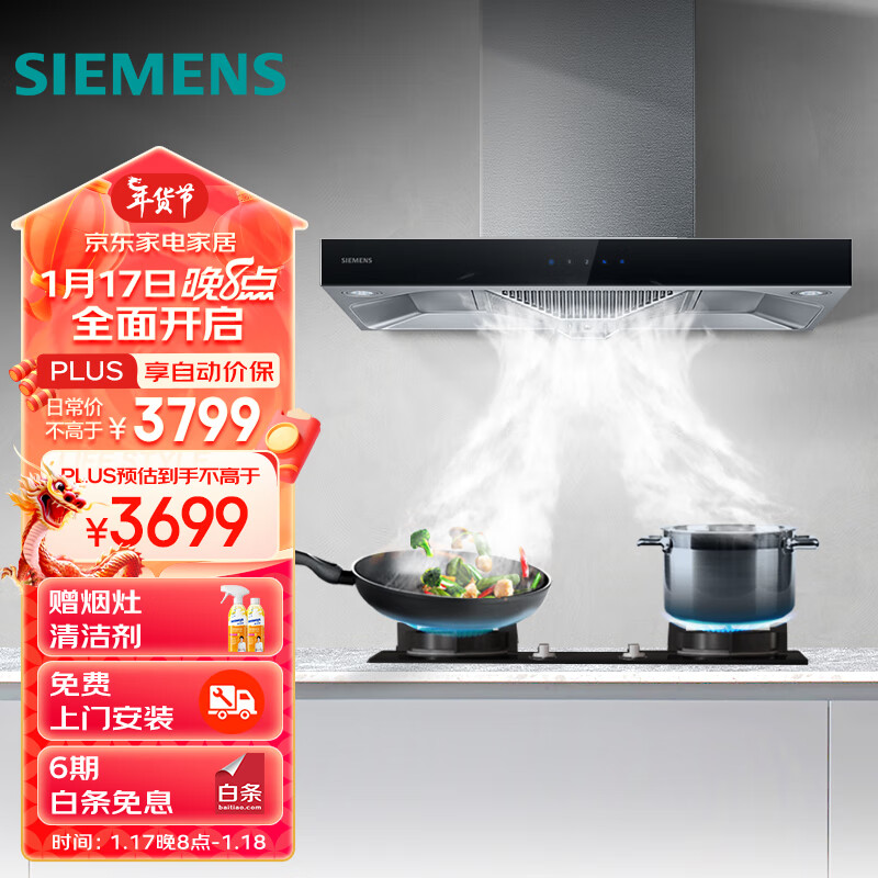 西门子(SIEMENS)抽油烟机灶具套装20m3/min 欧式油烟机 4.5kW燃气灶955W+GA23MP烟灶套装天然气价格:3698.00元!