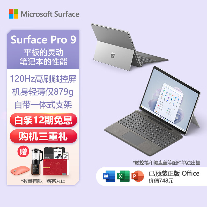微软Surface Pro 9 二合一平板电脑 i7/16G/1T亮铂金 13英寸高刷触控 高端办公 教育学习 笔记本电脑价格:17088.00元!