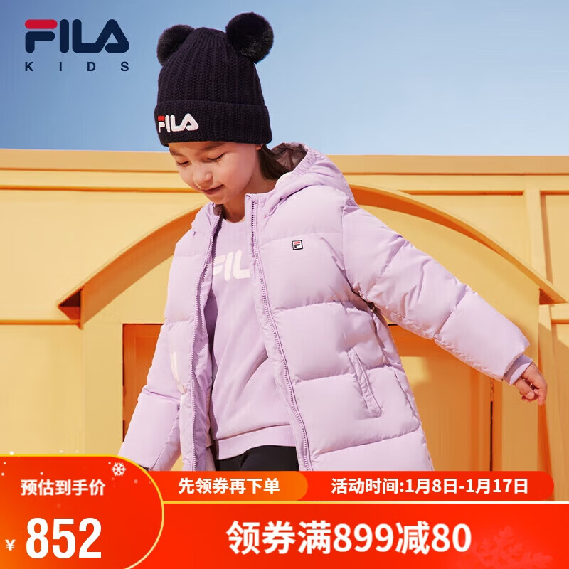 FILA斐乐童装儿童上衣外套2023秋冬男女童保暖中长款羽绒服价格:852.00元!