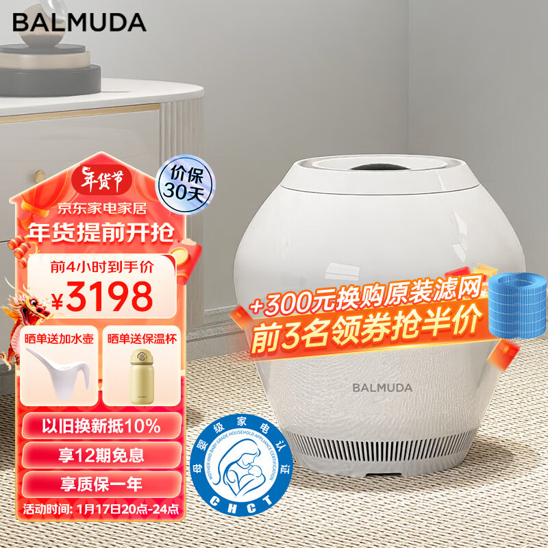 巴慕达(BALMUDA)加湿器卧室家用办公室高端无雾加湿智能恒湿空气加湿净化银离子Rain价格:3298.00元!