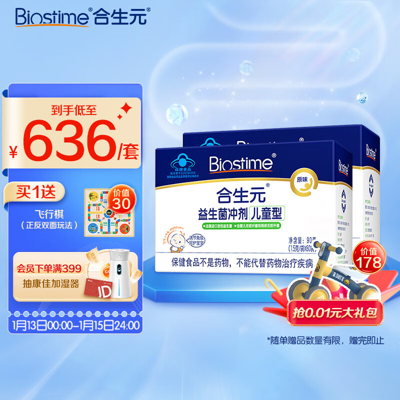 合生元(BIOSTIME)儿童益生菌冲剂(益生元)原味60袋装*2 升级款(宝宝可用 活性益生菌)价格:929.00元!