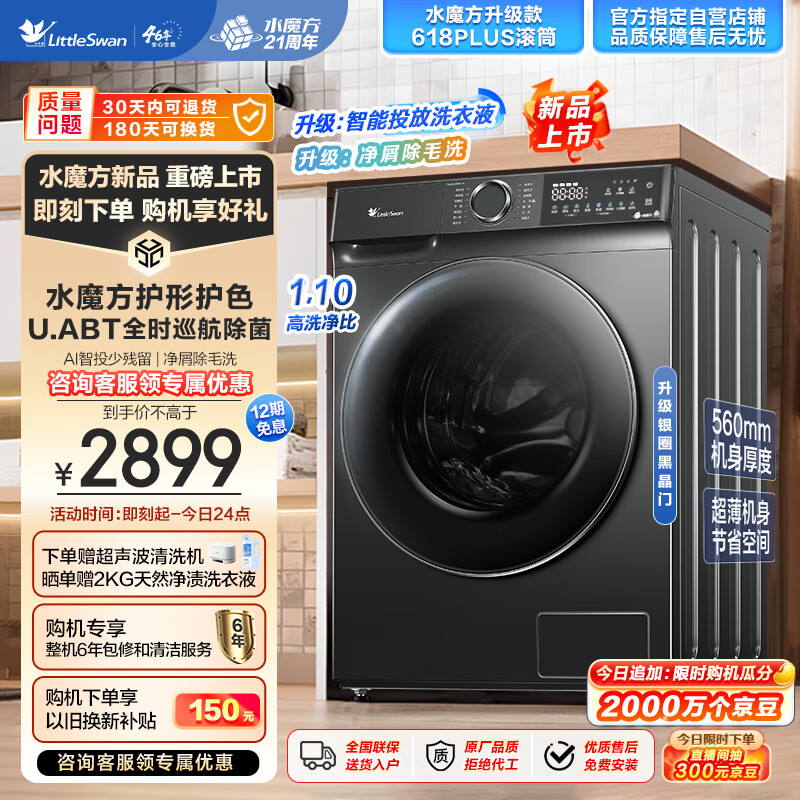 小天鹅(LittleSwan)滚筒洗衣机全自动 水魔方【TG100V618PLUS】护形护色 10公斤大容量 智能投放 1.1洗净比 巡航除菌价格:2899.00元!