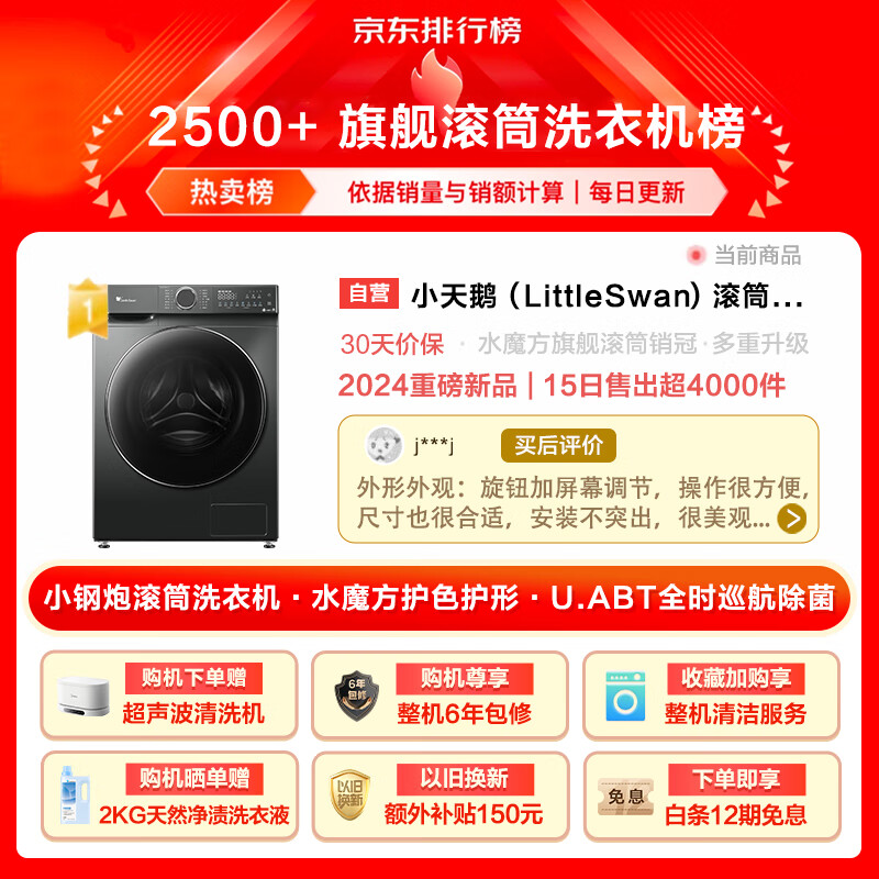 1、洗衣机款式很好,质量很好,一点声音都没有。物流速度很快,师傅安装也很快。小天鹅洗衣机,真的值得推荐,下次还会推荐朋友,质量好
