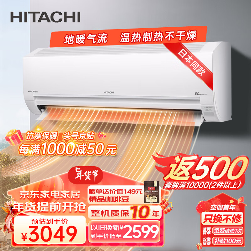 日立(HITACHI)白熊君 新3级能效 1匹全直流变频冷暖空调挂机低耗节能健康除菌大风量 以旧换新RAK/C-PE09PHBPC价格:3199.00元!