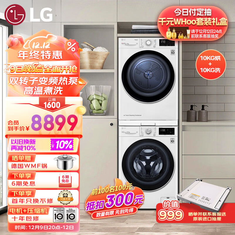 LG 洗烘套装10.5kg变频直驱洗+10kg进口变频热泵烘干 干衣机FLX10N4W+RH10V3AV6W(附件商品仅展示)价格:10199.00元!