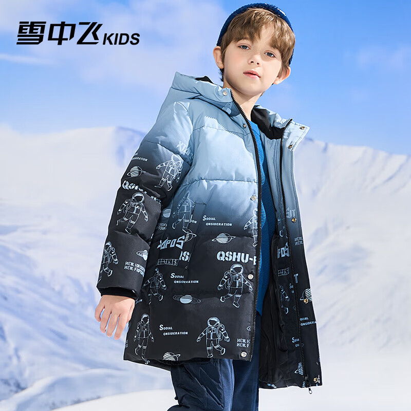 雪中飞童装男童羽绒服冬季中大童洋气女童儿童羽绒服星际时空110cm价格:699.00元!