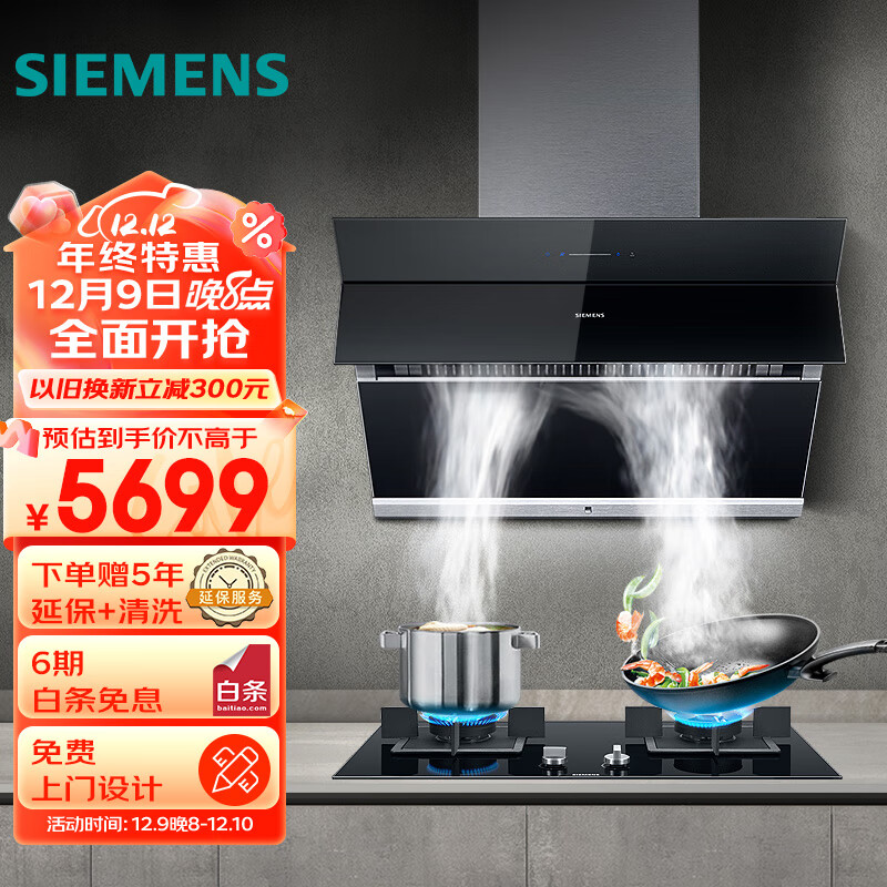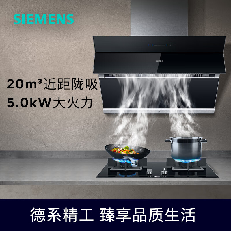 西门子(SIEMENS)抽油烟机灶具套装20m3/min侧吸油烟机5.0kW燃气灶965W+23MP烟灶套装天然气以旧换新价格:7099.00元!