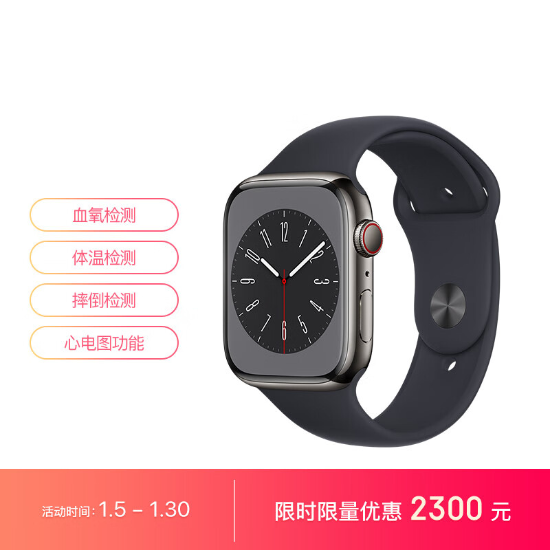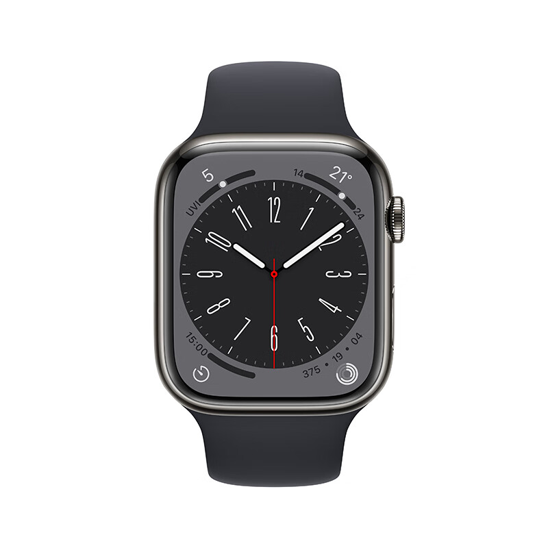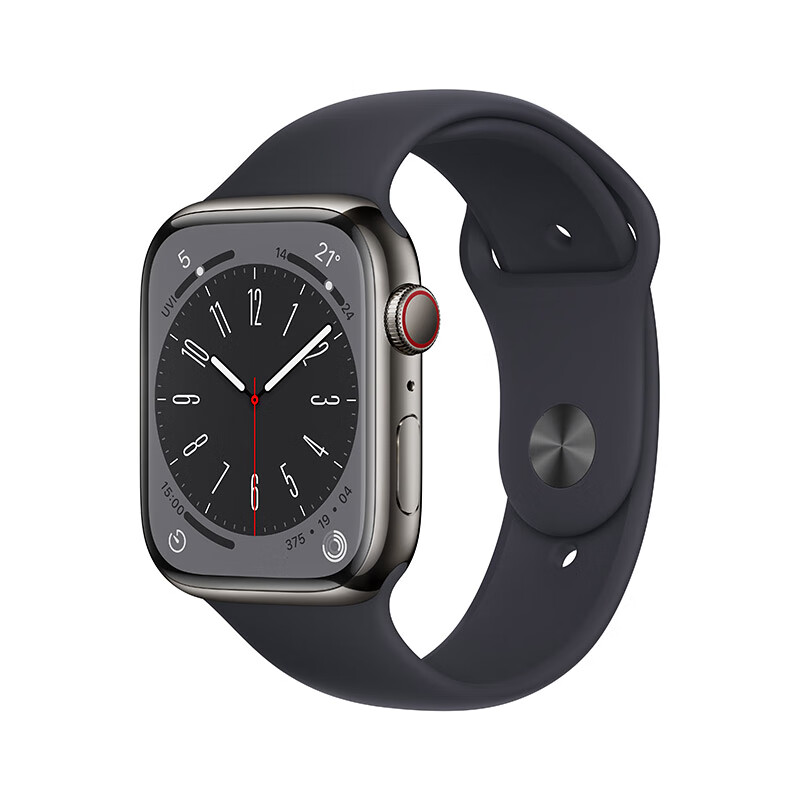 Apple/苹果 Watch Series 8 智能手表GPS+蜂窝款45毫米石墨色不锈钢表壳午夜色运动型表带eSIM手表 S8 MNKV3CH/A价格:3599.00元!