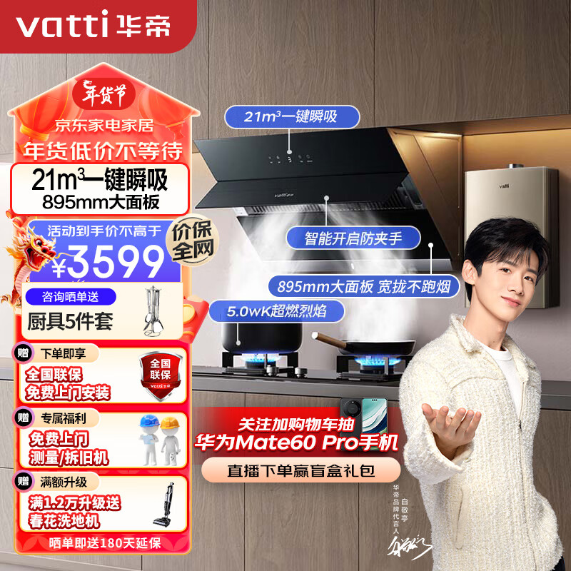 华帝(VATTI)抽油烟机侧吸式燃气灶具热水器套装 家用厨房三件套 触控 i11127S+71B+104-12(天然气)价格:3499.00元!