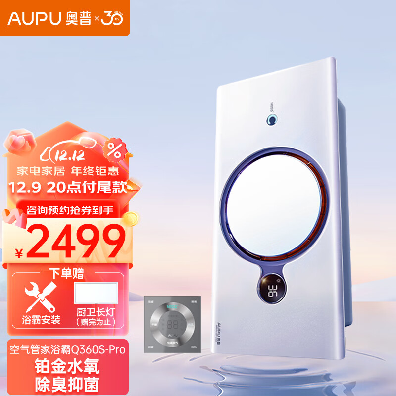 奥普(AUPU)浴霸Q360S-Pro空气管家热能环风暖铂金水氧数显 已接入米家价格:2799.00元!