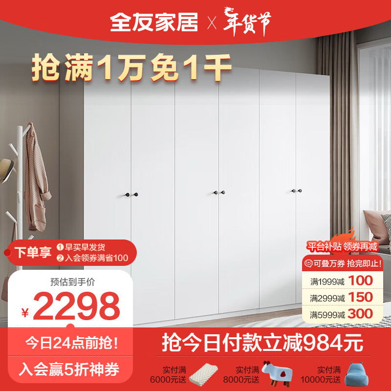 全友家居 衣柜简约风卧室衣物收纳纯色百搭多规格平开门家具DG10009价格:3282.86元!