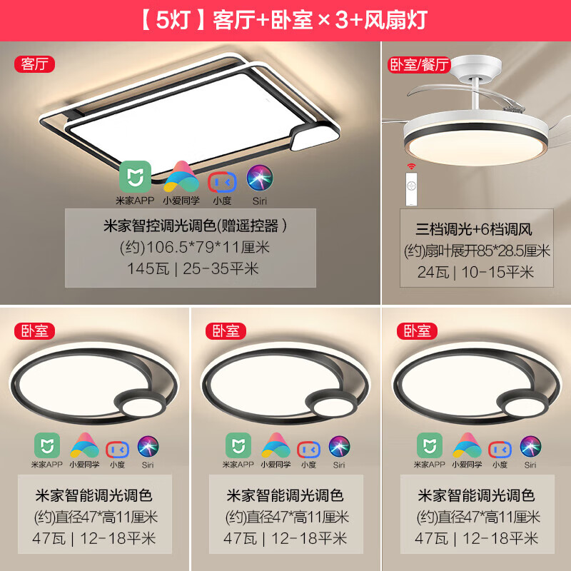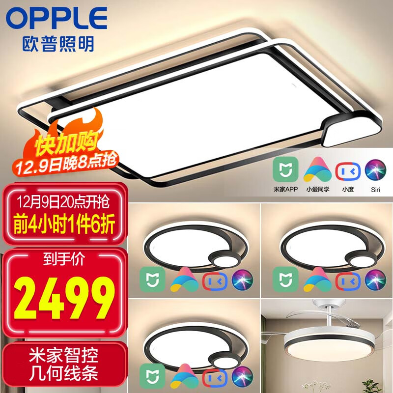 欧普(OPPLE)LED吸顶灯 后现代高端超薄客厅卧室灯饰套餐 智能音箱/AI智控调光价格:4569.00元!