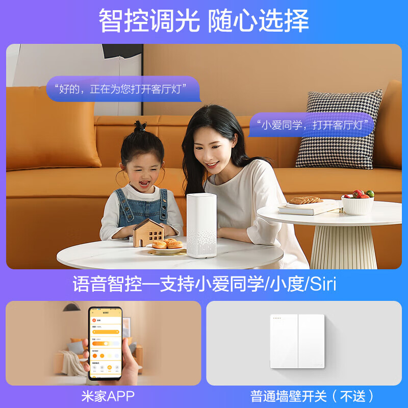 1、外观款式:几何造型,美观大方灯光效果:无极调光,亮度足够操作控制:米家智能控制,十分方便