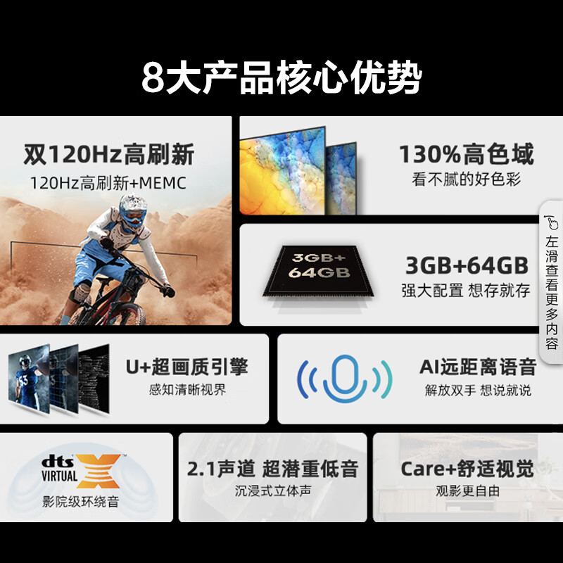 海信电视 85D7H 120Hz疾速刷新+120Hz MEMC 130%高色域 3+64GB 远场语音 DTS V-X音效价格:9999.00元!