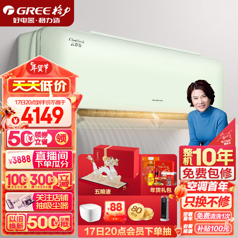 格力(GREE)新风空调 京东小家智能生态 大1匹 云舒氧 壁挂式卧室挂机KFR-26GW/NhHg1BAj(豆蔻绿)价格:4199.00元!