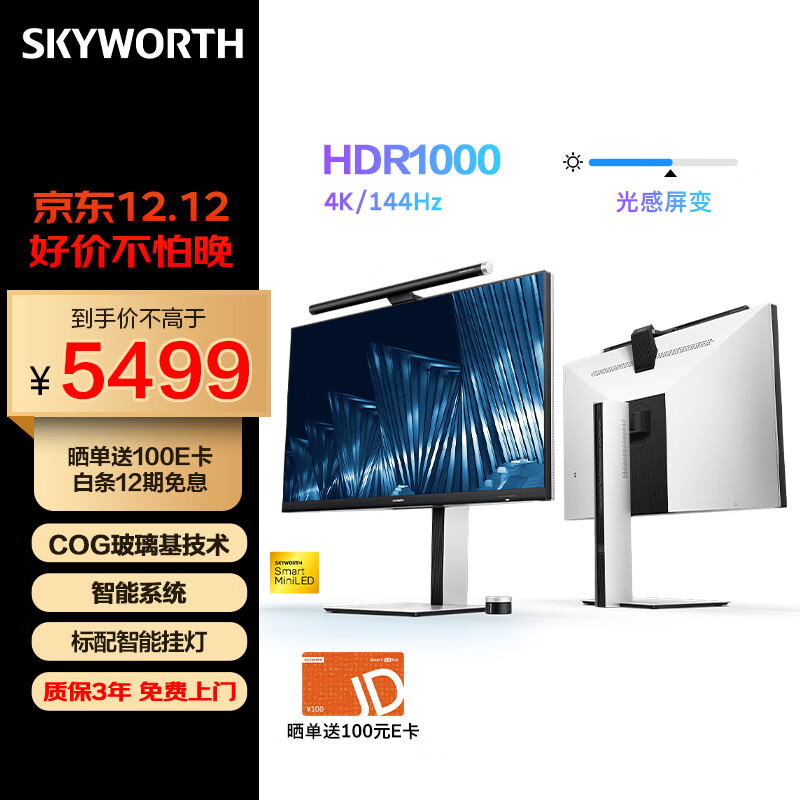 创维(Skyworth)31.5英寸 α-MLED miniLED 4K 144Hz 1Ms 1152分区 4608灯珠 Type-C 电竞电脑显示器F32D80U价格:7099.00元!