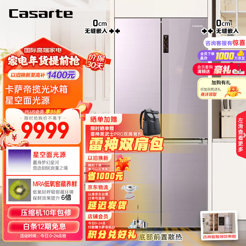 卡萨帝(Casarte)揽光系列507升超薄零嵌四开门家用大容量551姐妹款嵌入式电冰箱变频BCD-507WGCTDM4V3U1价格:9999.00元!