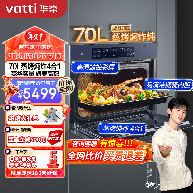 华帝(VATTI)嵌入式蒸烤箱一体机 家用 蒸烤炸炖四合一 70L大容量 多功能烹饪机APP掌控搪瓷内胆JFQ-i23021价格:5999.00元!
