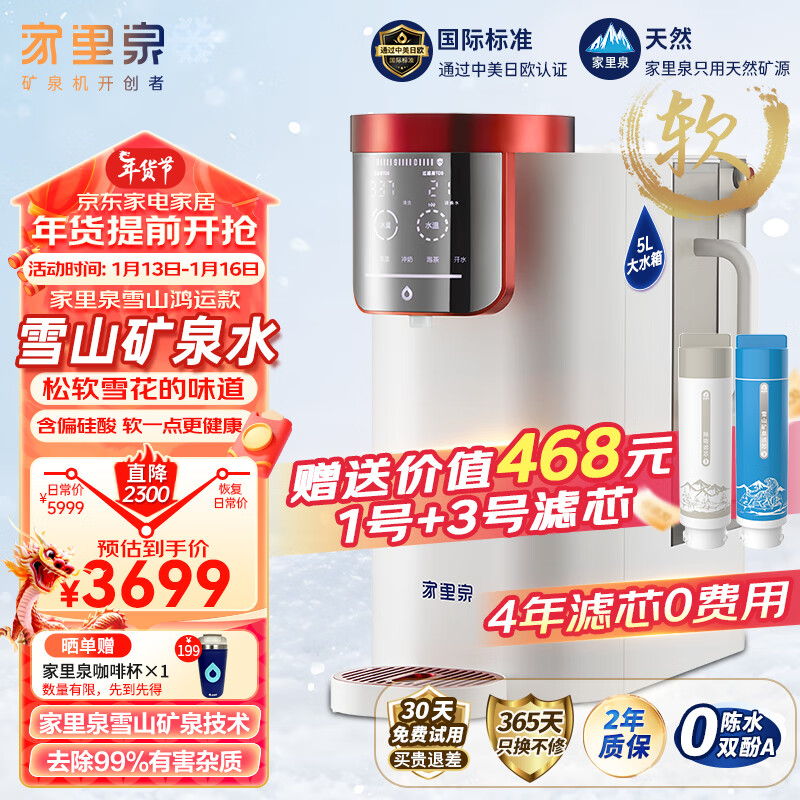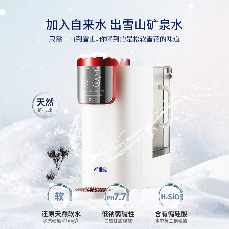 家里泉矿泉机 净水器家用台式加热直饮一体机RO反渗透即热式饮水机免安装净水器雪山矿泉款鸿运红价格:3999.00元!