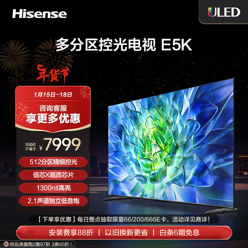 海信电视85E5K 85英寸 ULED 512分区 1300nit 4K 144Hz超高清智慧屏 液晶智能平板电视机 以旧换新价格:7999.00元!