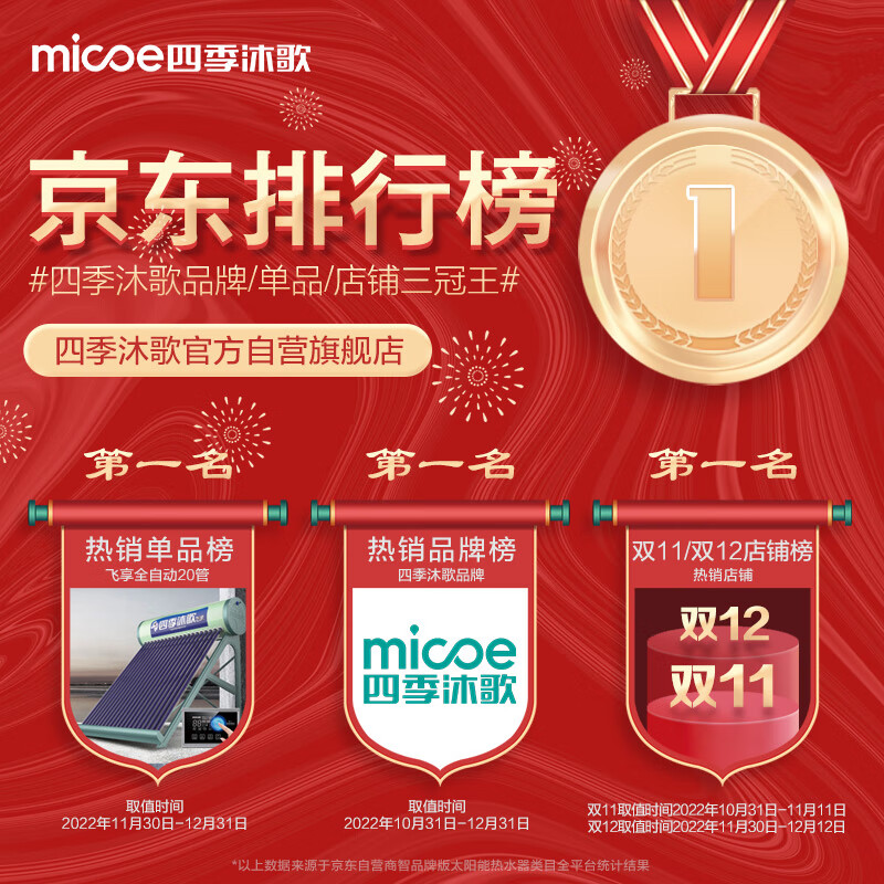 四季沐歌(MICOE)飞享WiFi太阳能热水器家用光电两用自动上水 预约电加热 水温水位显示 一级能效 上门安装20管155L价格:4080.00元!