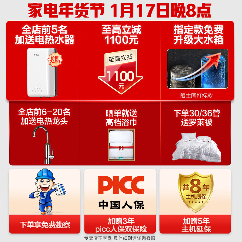 2、超大件儿的物品。占了半间屋子。是看到朋友家装了这款热水器。买了同款。他们的使用效果都挺好的。因为这周还没法安装,等装完了再进行评价。朋友有推荐,说是不错。等装完以后再来追评吧。