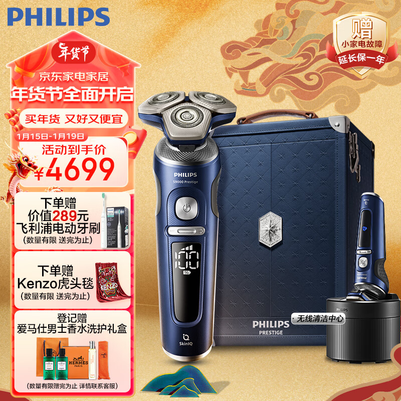 飞利浦(PHILIPS)电动剃须刀奢享蜂巢9系星空蓝礼盒 微提切科技刮胡刀 新年礼物 送男友送老公【整机荷兰进口】价格:4999.00元!