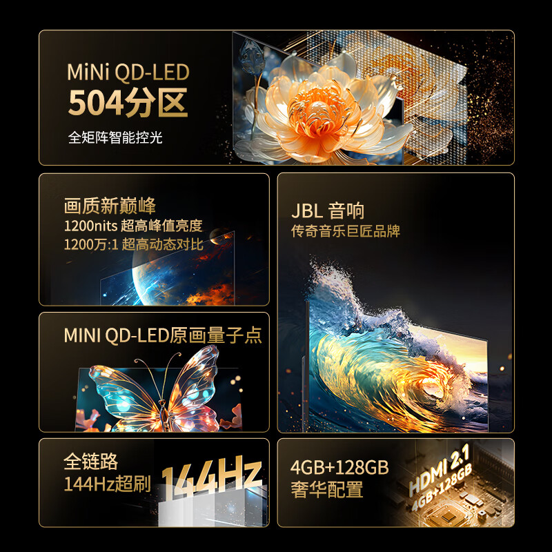电视类型:智能电视,开机无广告电视,MiniLED,游戏电视