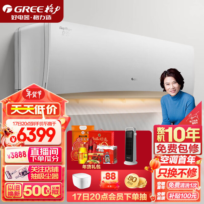 格力(GREE)空调 京东小家智能生态 3匹 京韵 新能效变频 壁挂式 客厅商铺挂机KFR-72GW/NhIe3BAj价格:6399.00元!