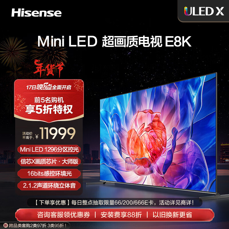 海信电视85E8K 85英寸 ULED X Mini LED 1296分区控光 4K 144Hz屏 液晶智能平板电视机 以旧换新价格:11999.00元!