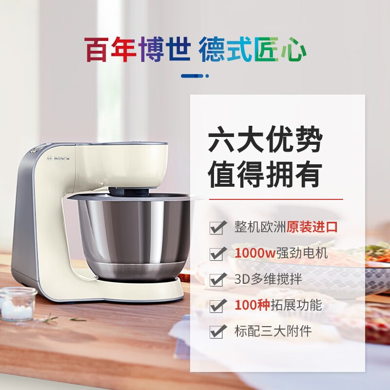 1、博世欧洲原装进口的机器,竟然才要1000多,性价比比国产的品牌高。黑白配的机身,颜值真的很高,标配的附件已经够家用,还可以搭配各种配件延展更多的功能,真的做到了一机多能。小白简单就能上手,有了博世厨师机,我也能成为别人眼中的烘焙高手!总体值得入手!
