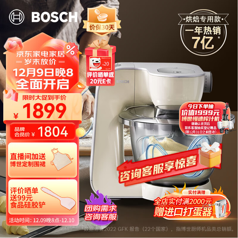 博世(BOSCH)欧洲原装进口全自动达人厨师机多功能料理机和面机搅拌机打蛋器绞肉机研磨机家用MUMVC00VCN价格:2199.00元!