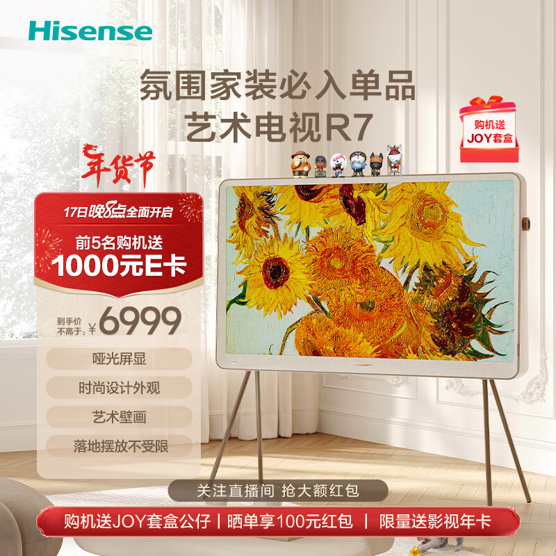 海信艺术电视55R7K 55英寸 ULED百分区 氛围家装必入单品 画境如诗 哑光屏显 壁画电视机智慧屏价格:6999.00元!