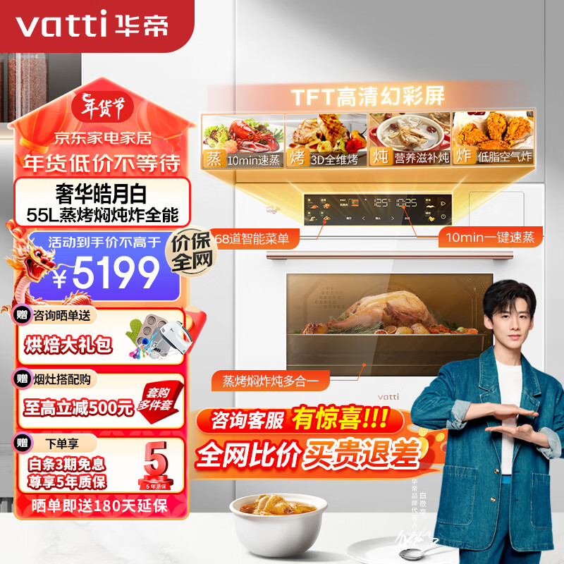 华帝(VATTI)蒸烤箱一体机白色蒸烤机蒸烤炖炸四合一嵌入式55L一键速蒸搪瓷内胆?家用蒸箱烤箱 JFQ-i23031价格:5199.00元!