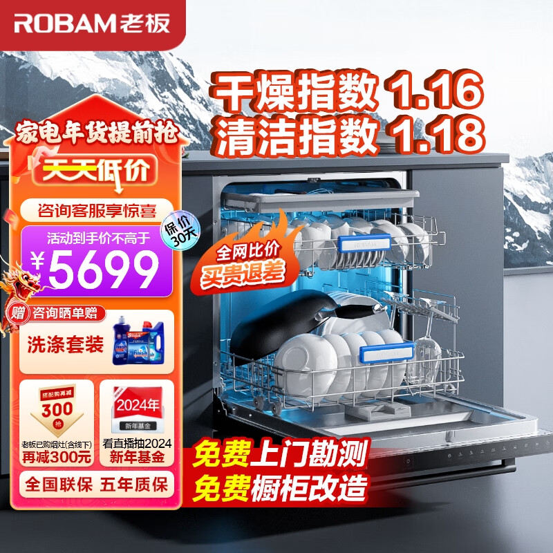 老板(Robam)WB797D 16套三层大容量嵌入式洗碗机去重油污会洗锅热风烘干消杀长效存储一体机家用快速洗价格:5699.00元!