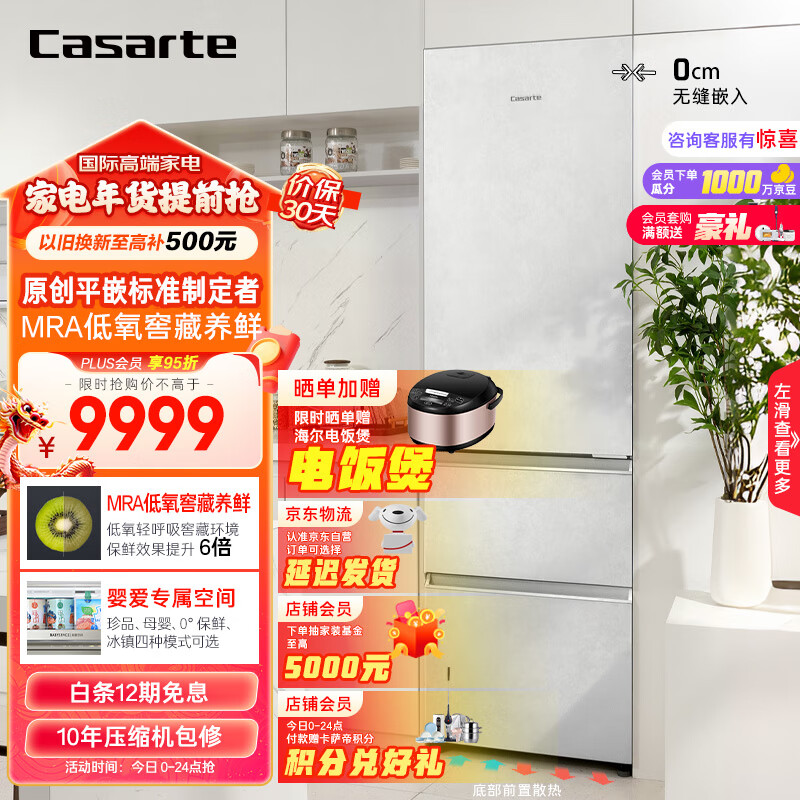 卡萨帝(Casarte)400升原创平嵌三开门家用超薄嵌入式电冰箱一级能效小型3-4人白色BCD-400WLCI3M4GDU1价格:9999.00元!