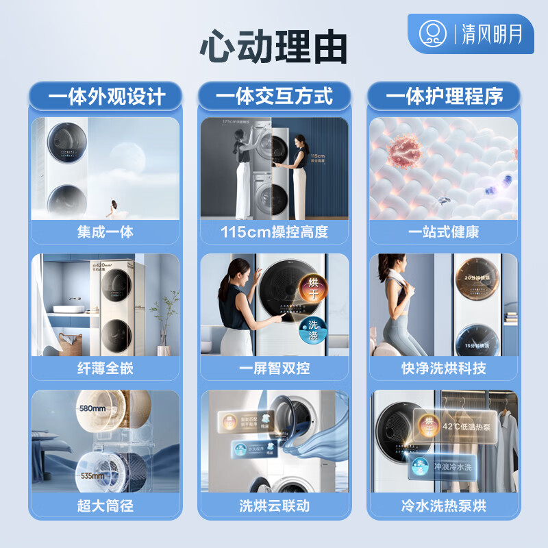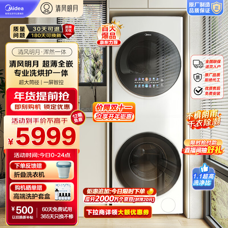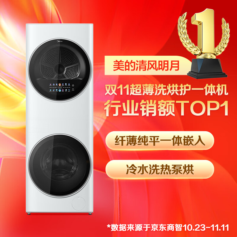 美的(Midea)洗烘护一体机 洗烘套装 10KG变频滚筒洗衣机全自动+热泵烘干机 超薄全嵌【清风明月】MGH20VE5价格:5999.00元!